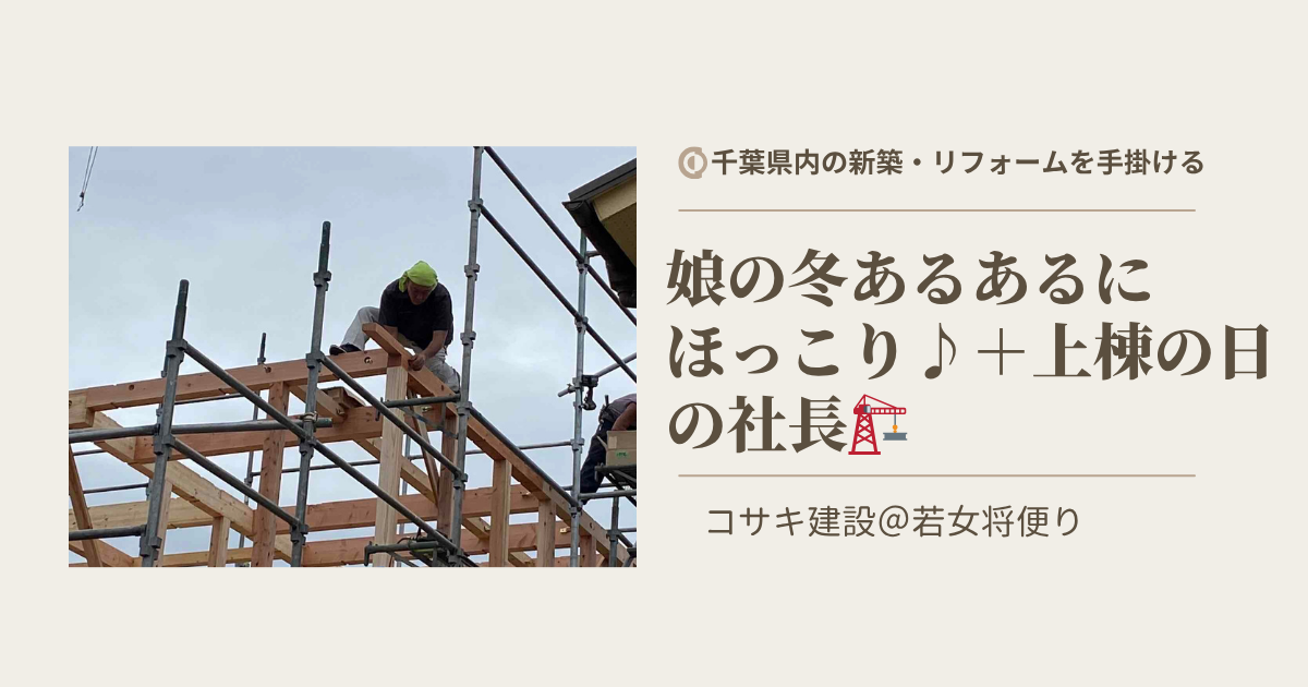娘のちょっと面白い冬あるあるや、上棟の日に社長が真剣に現場を見守る姿を見て、改めて家づくりの楽しさを感じました。
